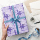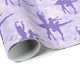 Duas imagens de silhueta de bailarina roxa lavanda são o recurso nesta ocasião em que o papel de embrulho de presente é todo presente. Os dançarinos são colocados sobre um sutil fundo de aquarela abstrato. Você pode personalizar este documento com um nome ou outro texto escolhendo "Personalizar". O design de segundo plano é cortesia do ATArtDigital no Etsy.
