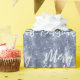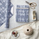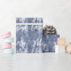 Este papel de embrulho moderno de vidro contém a expressão "Feliz Natal" em letra branca de pincel sobre um fundo de metal piscado azul empoeirado, decorado com um padrão floral brilhante.