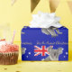 "É um Natal Aussie". Uma Koala australiana com a bandeira australiana ao fundo.