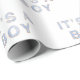 Um belo papel azul de embrulho "É um Menino". Cor de bebê macia. Perfeito para um chá de bebê. Que papel bonito para enrolar todos os presentes.