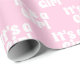 É um papel de enrolar de presente de chá de fraldas branco para Garota, rosa claro