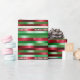 Este papel de embrulho de Natal apresenta uma design festiva com listras horizontais em cores tradicionais de Natal, verde, vermelho e branco, melhoradas por um efeito cercado metálico que adiciona um brilho elegante. O design inclui texto personalizável, permitindo que você adicione mensagens pessoais como "Feliz Natal para [Nome] de [Remetente(s)]", que se repete ao longo das faixas para uma aparência coesa. O efeito shimmering pega a luz lindamente, criando uma apresentação luxuosa e atraente para seus presentes. Este papel de embrulho é perfeito para adicionar um toque personalizado e deslumbrante aos seus presentes de Natal.