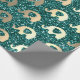 Papel De Presente Elefante Bebê Dourado Profundo Glitter Verde