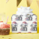 Um lindo elefante bebê veste um chapéu festivo de Papai Noel e fica ao lado de uma pilha de caixas coloridas de presentes embrulhadas com fitas
