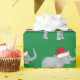 Papel De Presente Elefante de Natal em Santa Hat Green