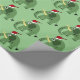 Papel De Presente Elefante verde engraçado do Natal no chapéu do
