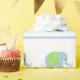 Um design bonito com elefantes azuis vestindo cobertores coloridos. As listras suaves acendem-no. Adicione uma cor ao plano de fundo, se desejar.