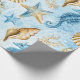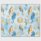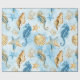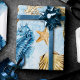 Papel De Presente Elegância Costeira | Moderno Azul e Dourado Sob o