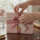 Papel De Presente Elegant Blush Pink & Gold Pinstripe Initial H Mono