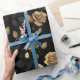 Papel De Presente Elegant Gold Accent Rose Black Floral Pattern