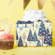 Evergreen and deciduous trees in the winter, with snow or berries on the branches, make this retro-looking wrapping paper perfect for your holiday gifts. Resembles designs from the 1950s and 60s, with a modern update.