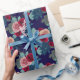 Papel de envolvimento elegante nos azuis marinhos com um teste padrão floral strewn sobre ele. Os rosas do pêssego e do rosa junto com peônias vermelhos escuro dançam nas camas do sábio, da hortelã e das folhas profundamente azuis.