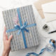 O Elegante Dusty Blue Dourado & Silver Glitter Abstrato Wrapping Paper apresenta ouro e listras prateadas abstrato em fundo azul empoeirado.Um presente perfeito para design para festivos, comemorações, aniversário, feriados, aniversário, festa e casamentos.
