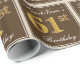 Este design de papel simples e elegante apresenta uma mensagem personalizada, como "PrimeiroNome é o aniversário de 61ruas" (com as "61ruas" com aparência falsa/imitação de cor dourada), dentro de uma área quadrada de cor castanha com um contorno simples de fronteira. O nome está em um texto elegante, de cor branca, parecido com script, e pode ser personalizado. Um papel de embrulho como este poderia talvez ser usado ao embrulhar presentes de aniversário para alguém que comemora seu sessenta aniversário. [~Z0000223]
