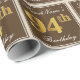 Este design de papel simples e elegante apresenta uma mensagem personalizada como "94.º Aniversário do Primeiro Nome" (com o "94.º" a ter um aspecto de cor dourada falsa/imitação) numa área quadrada de cor castanha com um contorno de fronteira simples. O nome está em um texto elegante, de cor branca, parecido com script, e pode ser personalizado. Um papel de embrulho como este poderia talvez ser usado ao embrulhar presentes de aniversário para alguém que comemora o seu 90º aniversário. [~Z0000223]