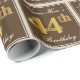 Este simples e elegante design de papel de embrulho apresenta uma mensagem personalizada como "Name-Here's 44 Birthday" (com o "44" a ter um aspecto de cor dourada falso/imitado) dentro de uma área quadrada de cor castanha com um contorno de fronteira simples. O nome está em um texto elegante, de cor branca, parecido com script, e pode ser personalizado. Um papel de embrulho como este poderia talvez ser usado ao embrulhar presentes de aniversário para alguém que comemora seus quarenta e quatro anos. [~Z0000223]
