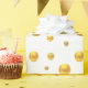 Belo e elegante olhar metálico de ouro confete em papel branco de enrolamento de fundo. Um belo e moderno papel de moldagem. Dourado confete sobre o Papel de Embraiamento de Presente Branco.