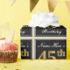 Este simples e elegante design de papel de embrulho apresenta uma mensagem personalizada como "Name-Here's 45th Birthday" (com o "45º" a ter um aspecto de cor dourada falsa/imitação) dentro de uma área quadrada de cor preta com um contorno de fronteira simples. O nome está em um texto elegante, de cor branca, semelhante a script, e pode ser personalizado. Um papel de embrulho como este poderia talvez ser usado ao embrulhar presentes de aniversário para alguém que comemora seus quarenta e cinco anos. [~Z0000217]