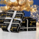 Este simples e elegante design de papel de embrulho apresenta uma mensagem personalizada como "segundo aniversário do NomeAqui" (com o "segundo" a ter um aspecto de cor falsa/imitação dourada) dentro de uma área quadrada de cor preta com um contorno de fronteira simples. O nome está em um texto elegante, de cor branca, semelhante a script, e pode ser personalizado. Um papel de embrulho como este poderia talvez ser usado ao embrulhar presentes de aniversário para alguém que comemora seu segundo aniversário. [~Z0000217]