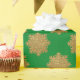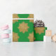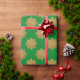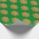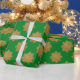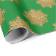 Papel festivo de embrulho com falso brilho dourado com padrão de floco de neve em fundo verde. Elegante design por apresentar seus presentes para a época de Natal.