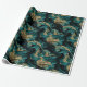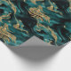 Papel De Presente Elegante Molten Teal e Glitter Dourado Aniversário