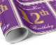 Papel De Presente Elegante, Roxo, Faux Dourado 12 Aniversário + Nome