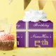 Este simples e elegante design de papel de embrulho apresenta uma mensagem personalizada como "NameHere's 5 Birthday" (com o "5" a ter um aspecto de cor dourada falso/imitado) dentro de uma área quadrada de cor púrpura com um contorno de fronteira simples. O nome está em um texto elegante, de cor branca, parecido com script, e pode ser personalizado. Um papel de embrulho como este poderia talvez ser usado ao embrulhar presentes de aniversário para alguém que comemora seu quinto aniversário. [~Z0000220]