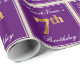 Papel De Presente Elegante, Roxo, Faux Dourado 7 Aniversário + Nome