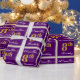 Papel De Presente Elegante, Roxo, Faux Dourado 8º Aniversário + Nome
