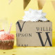 Uma coroa elegante parece um nome monograma que embrulha papel. Um design de papel embrulhado com um nome monograma personalizado que incorpora seus nomes e iniciais. Um nome personalizado ideal para papel de embalagem para aniversários, presentes de Natal, presentes de férias, casamentos, etc. Simplesmente personalize o pacote de presente monograma e faça dele seu.