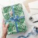 Este elegante papel de embrulho botânico apresenta um padrão de folhas de monstera verde teal.