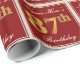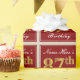 Este design simples e elegante de papel de embrulho apresenta uma mensagem personalizada como "Nome-Aqui está fazendo 87 anos" (com o "87º" tendo uma aparência de coloração dourada falsa/imitada) dentro de uma área quadrada de cor vermelha com um simples contorno de borda. O nome está em um texto elegante com aparência de letra cursiva de cor branca e pode ser personalizado. Papel de embrulho como este poderia ser usado ao embrulhar presentes de aniversário para alguém que está celebrando seu octogésimo sétimo aniversário.