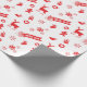 Uma repetição contínua vermelha de elementos de Natal - meias, gingerbreadman, flocos de neve, renas, Enfeites de natal, velas, árvore de Natal e as palavras "Feliz Natal" - em ilustração.