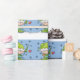 Um lindo filhote de elfo fica na neve com um ursinho de pelúcia e um guarda-chuva de árvore de Natal. Cores de blues e verdes. Excelente para o primeiro Natal ou qualquer bebê celebrando o Natal. Design original de Christie Black of Creations do Coração.
