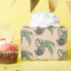 Um elfo guerreiro louro vestindo uma armadura de joias. Um pequeno dragão verde fica no ombro do elfo louro.
