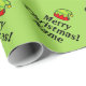 O elfo verde personalizou o Merry Christmas Wrapping Paper. Texto de presentes personalizável para saudações de estações personalizadas e nome do filho. Cor de fundo e texto personalizáveis para os desejos de Feriado ou nota engraçada. Surpreenda seus amigos e família durante os feriados. Design de chapéu de elfo personalizado bonito para favoritos para festas de Natal e presentes. Adequado para homens, mulheres e crianças (rapazes ou raparigas). Tipografia química. Cor verde e vermelha. Roupa de presente divertida para mãe, pai, filho, filha, irmã, crianças, etc. Acessórios e suprimentos de Natal DIY personalizados para embrulhar presentes. Adicione seu próprio nome a este modelo.