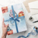O papel de embrulho colorido mostra pinguins alegres vestindo chapéus festivos. Presentes de Natal adoráveis, o design brincalhão incorpora o espírito do Natal, perfeito para embrulhar presentes nesta temporada.