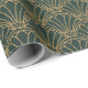 Papel De Presente Emerald Green e Dourada Art Deco Flower Motif