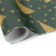 Papel De Presente Emerald Green Gold Glitter Xmas Trees and Stars