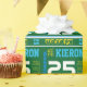 Texto moderno e faixa esportiva design personalizada idade anos-idade, meninos, papel de embrulho, com tipografia gráfica e seu próprio nome de seis letras em verde, branco, amarelo e azul. Personalize com o seu próprio nome (por favor, note que nem todos os nomes irão ajustado devido à natureza da fonte) e à idade, que lê atualmente Kieron 25, outras extensões de nome estão disponíveis, se precisar de assistência, por favor contacte-me, contente-se por postar uma pelo seu nome. Uma forma excelente de dar um toque personalizado aos presentes de aniversário. Desenvolvido exclusivamente pela Sarah Trett.