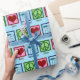 Papel de embrulho de Endoscopia de Paz para um aniversário ou presentes de Natal. Um presente bonito com um sinal de paz, coração e endoscópio usado em procedimentos médicos para o alcance de um paciente.
