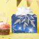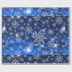 O papel de embrulho para celebração de Natal ao desenhar com os Enfeites de natal com folhas de decoração de neve em impressões retrorados com uma apresentação de cor azul.