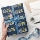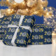 Dourado texto 2025 com Enfeites de natal em azul com flocos de neve. A cor de fundo pode ser alterada.