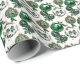 Papel festivo de embrulho de Natal com um padrão de aquarelas de belos Enfeites de natal. Enfeites verdes brilhantes com padrões de ouro. Ornamentos brancos com um padrão de brilho oco e dourado, ornamentos pequenos verdes e brancos e holly espalhados ao longo do padrão.