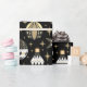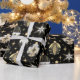 Este design de presente vintage traz todos aqueles sentimentos nostálgicos. O presente apresenta um padrão bonito e elegante de enfeites de vidro pretos e dourados.