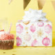 Esse papel elegante e festivo de embrulho é versátil e pode ser usado para dar presentes ou projetos de arte e artesanato. É perfeito para o Natal e para o feriado. O design apresenta ornamentos cor-de-água rosa e dourados.