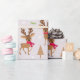 Esfregando papel com uma rena fofa em lenços e luzes de Natal.