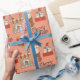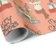 Este engraçado papel de embrulho de Natal apresenta um estilo de vintagem retrô com desenhos de desenho de uma rena com um cachecol vermelho listrado, uma lareira com meias, e uma torre de presentes de Natal. O texto do bobo contém a palavra "Feliz Natal". Tão fofo para os feriados.