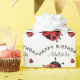 Este adorável design apresenta joias vermelhas e um padrão de bolinhas vermelha e preta fofo, moderno, com as palavras "FELIZ ANIVERSÁRIO Adelaide". Clique em "Personalizar este modelo" para alterar o nome e qualquer uma das palavras. Se precisar de ajuda para a personalização, envie-me um e-mail para @gmail.com. Obrigados para parar em www.zazzle.com/CuteKidStuff. ©Karen Hall