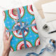 Este papel de embrulho festivo e personalizado do tema natalício apresenta um fundo de cor azul macio com flocos de neve de cristal azul. Uma foto de amostra é colocada sobre o papel de embrulho com uma estrutura externa verde, seguida de uma moldura de canas doce cor de péppermo vermelha e branca. A mensagem "Entrega especial de Papais noeis" é impressa no topo em uma fonte vermelha e branca. Um nome de exemplo é impresso na parte inferior em verde. Uma fotografia é colocada no centro que pode ser substituída por uma fotografia do seu próprio filho ou por uma imagem personalizada.